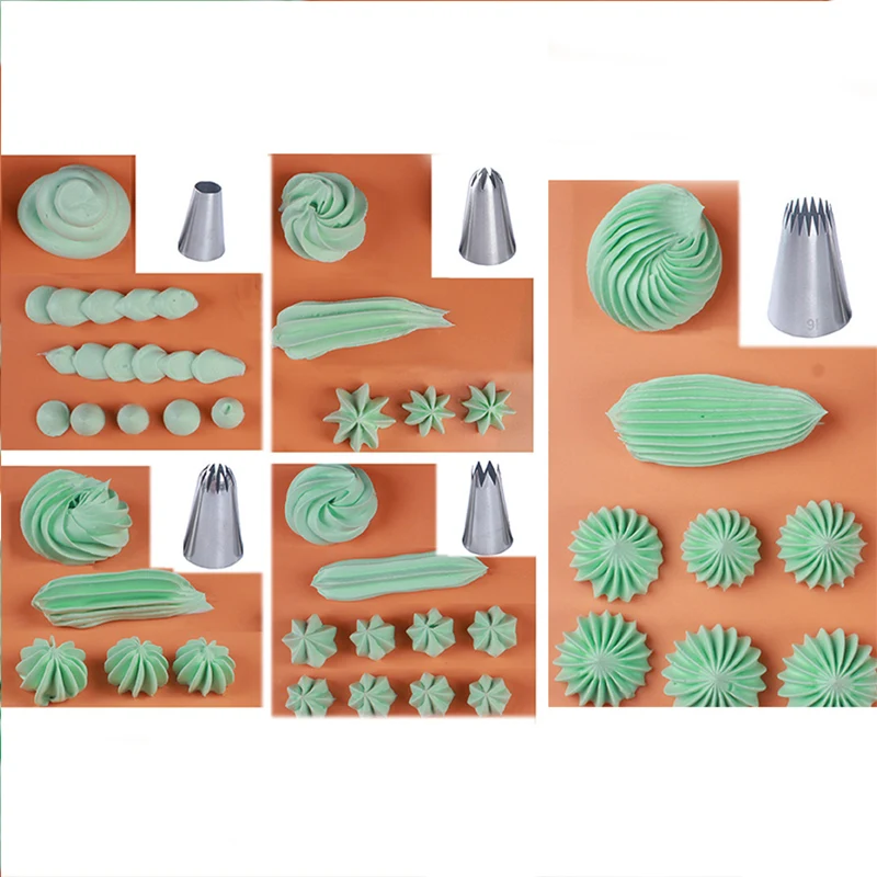 Эти насадки для украшения торта включают большие и маленькие круглые наконечники, наконечники для хризантем, розовые наконечники, оборки и т. д.