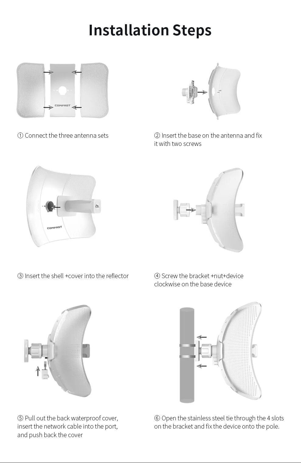 Обратная конструкция антенны через отверстие принимается, чтобы эффективно уменьшить сопротивление ветра и сопротивляться бурной погоде, и продукт адаптируется к окружающей среде значительно улучшен