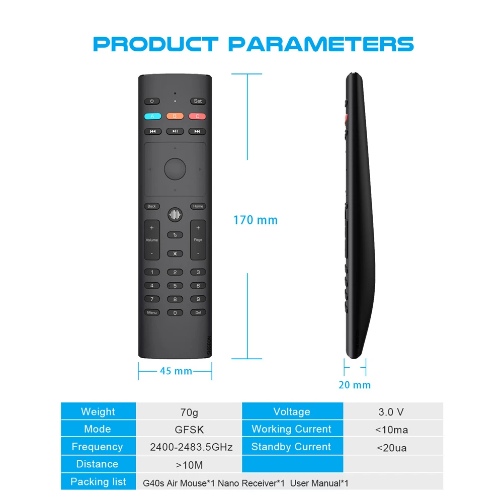 Кнопки A,B и C можно переключить на фиксированный ИК-пульт дистанционного управления