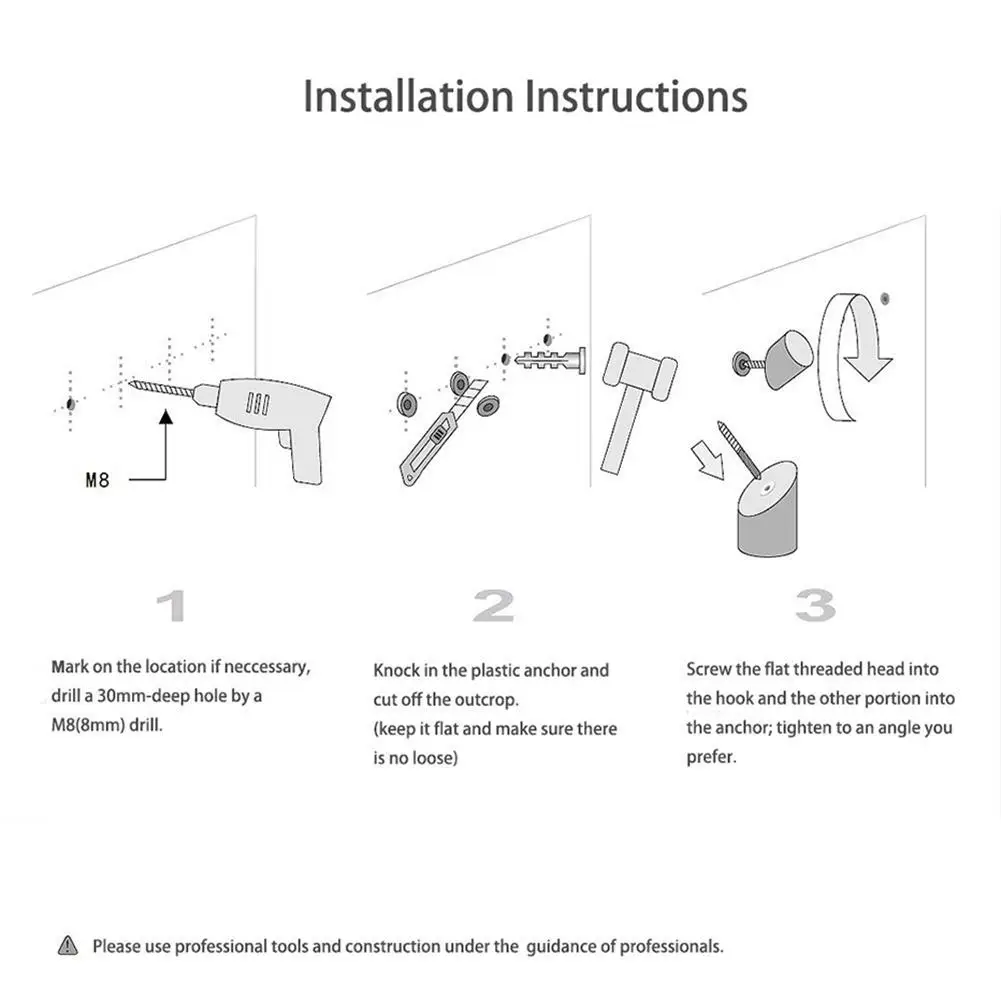 Установка: сверлите расширительный винт в стену с помощью электрической дрели или другого инструмента, затем вкрутите деревянный крюк в стену.