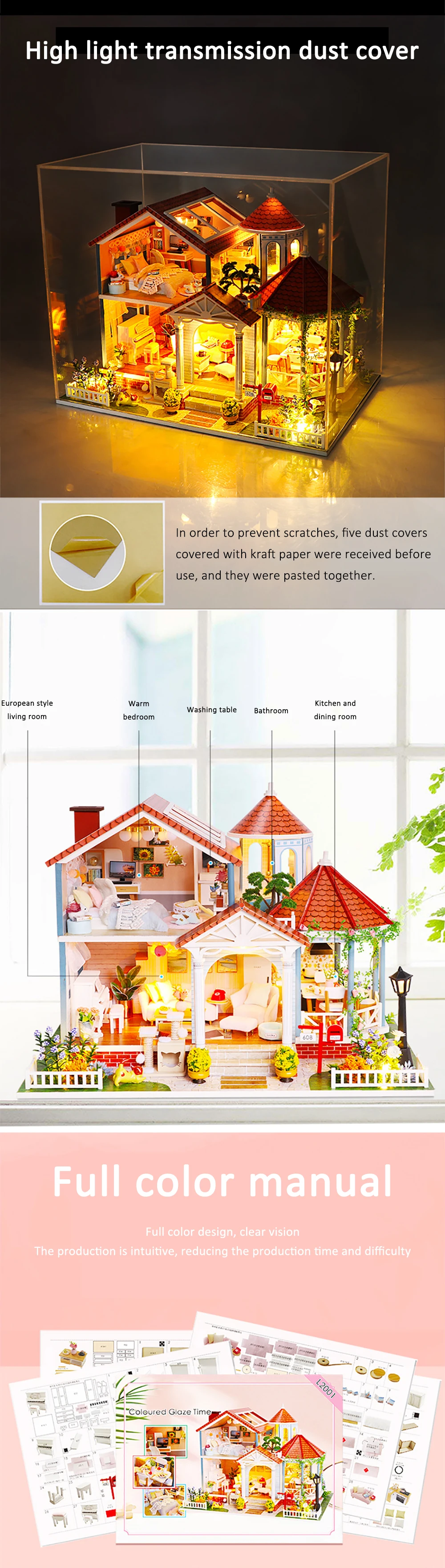 Все товары такие же, как на изображении. Они поставляются с частями, и вам нужно собрать их самостоятельно. Если вы, наконец, столкнулись с какими-либо проблемами во время процесса установки, пожалуйста, свяжитесь с нами Бесплатный подарок: купите 1 Кукольный домик, получите 1 Набор инструментов для сборки 1. Включая всю отображаемую мебель 2. Стиль: Скандинавская Европа 3. Размер: 30*20*22 см 4. Материал: дерево, ткань, бумага, смола, пластик, материал 5. Руководство: с инструкцией 6. Изделие имеет детали и должно быть собрано 7. Светодиодный светильник и музыкальная шкатулка Примечание: 1. Не включает клей/аккумуляторы. 2. Возраст: подходит для детей старше 8 лет 3. Дети до 3 лет должны сопровождать взрослых Мы предоставляем профессиональное обслуживание дропшоппинга. Мы обещаем, что в посылка не включены счета-фактуры, рекламные материалы, визитки. Кроме того, мы обеспечим полное отслеживание грузов для обеспечения безопасного прибытия груза.