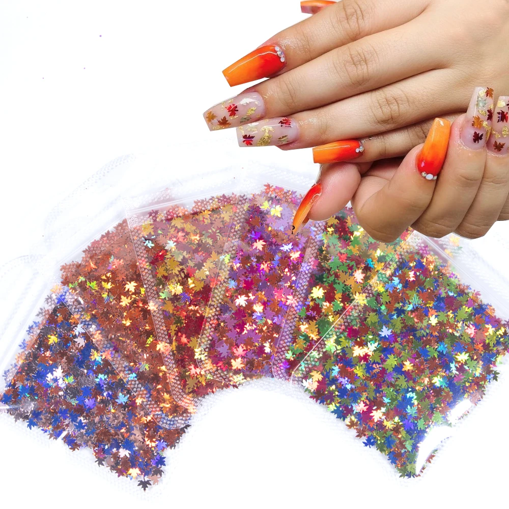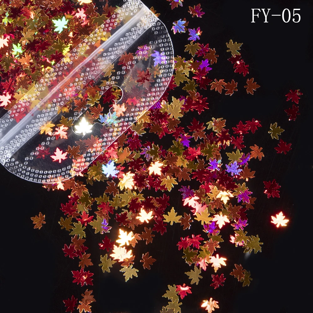 1 сумка кленовый лист для дизайна ногтей блестящие блестки смешанные осенние листья хлопья голографические золотые украшения для дизайна ногтей аксессуары 4g