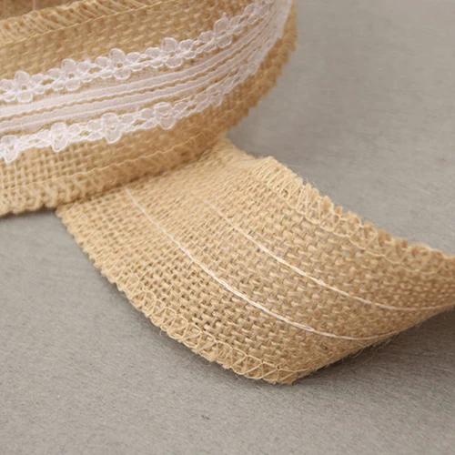 Лента из натуральной мешковины с белым кружевом в середине или по краю.