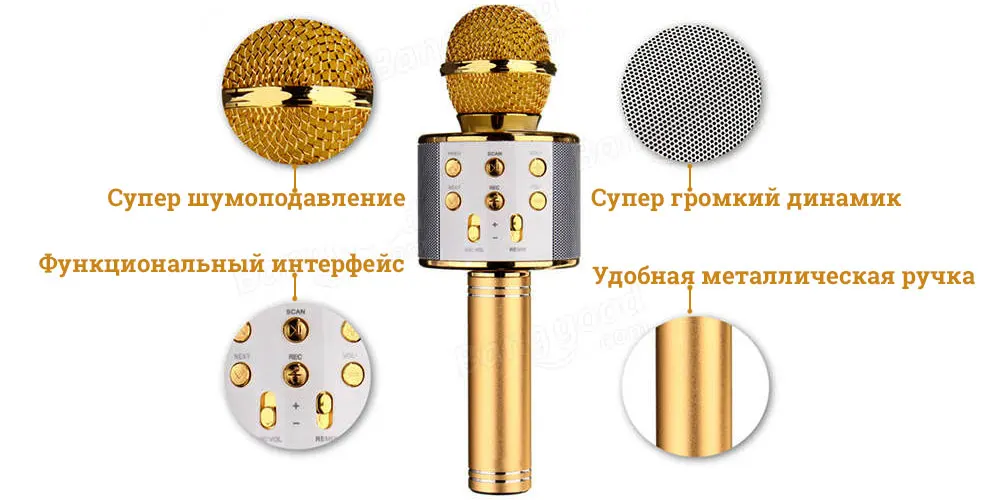 The most important difference-on the original wster ws-858 microphone should be the voice change function. And accordingly the voice converter mark on the package. The microphone is presented only in three colors: gold, rose gold and black. Fake is presented in other colors.