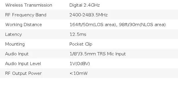 Принятия в 2,4 ГГц Беспроводная технология, G1(A2) передачей данных без искажений сигналы в 164ft/50 м (ЛОС) в 12,5 г-жа низкой задержкой, из-за чего дальняя дистанция съемки более гибким, И работает плавно в пределах 98ft/30m(NLOS), идеально подходит для препятствий, таких как выступления на сцене и выступления.