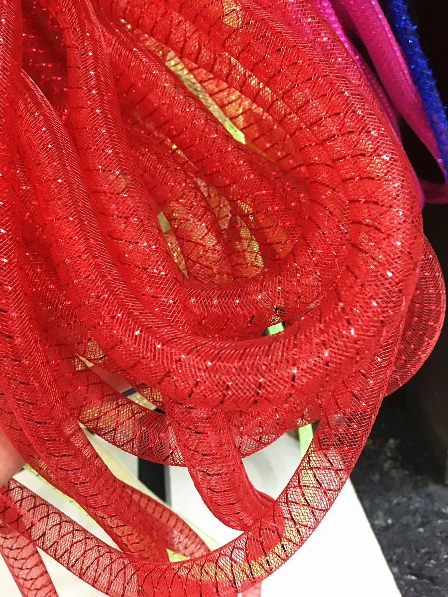 15mm 5M/lot Multicolored Mesh Tubing DIY Braid ornament of hair band Wide Mylar Tinsel Mesh Tube LED Light accessories