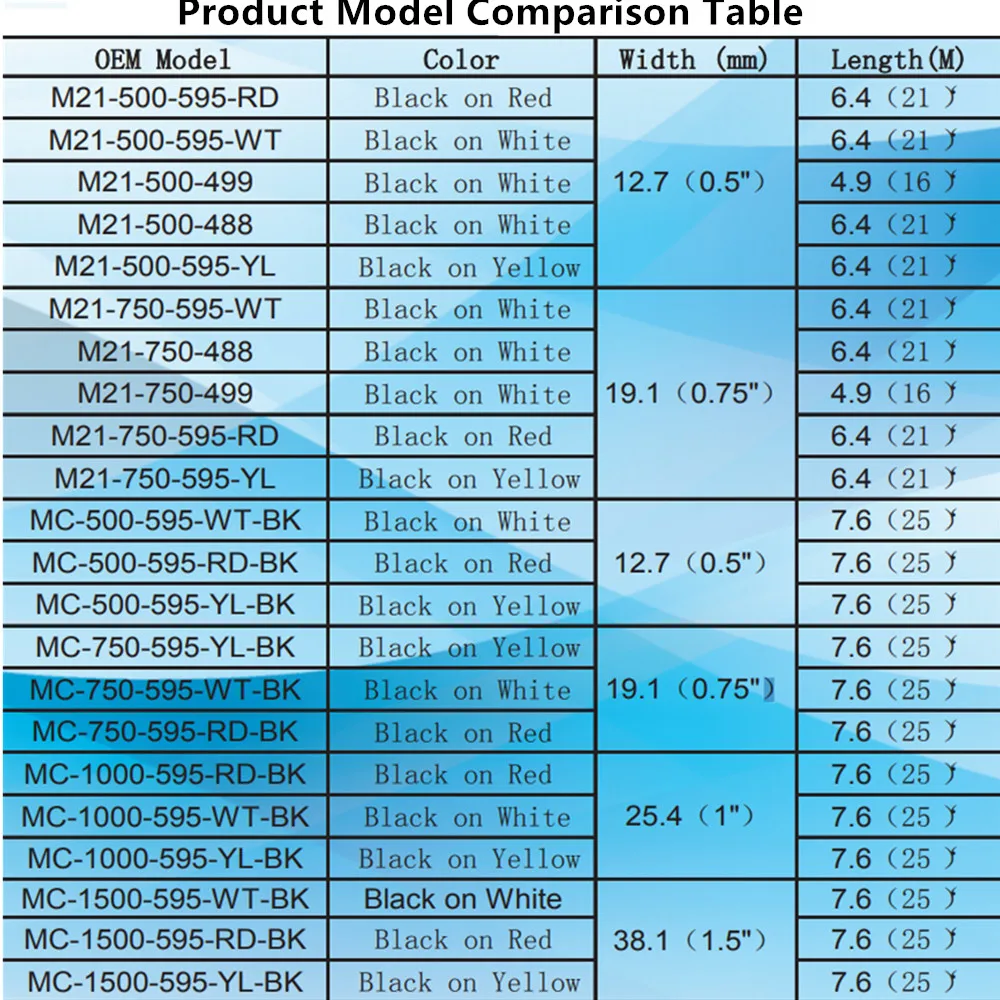 M21-500-488 черный на белой этикеткеМатериал:ПолиэстерЦвет:Черные чернила на беломРазмер:12,7 мм * 6,4 мПосылка:M21-500-488 ленточный ярлыкСовместимый принтерДля принтера BMP21 PlusДля лабораторного принтера BMP21Полиэфир (пэт): Широкий спектр применения, может использоваться в помещении и на открытом воздухе.