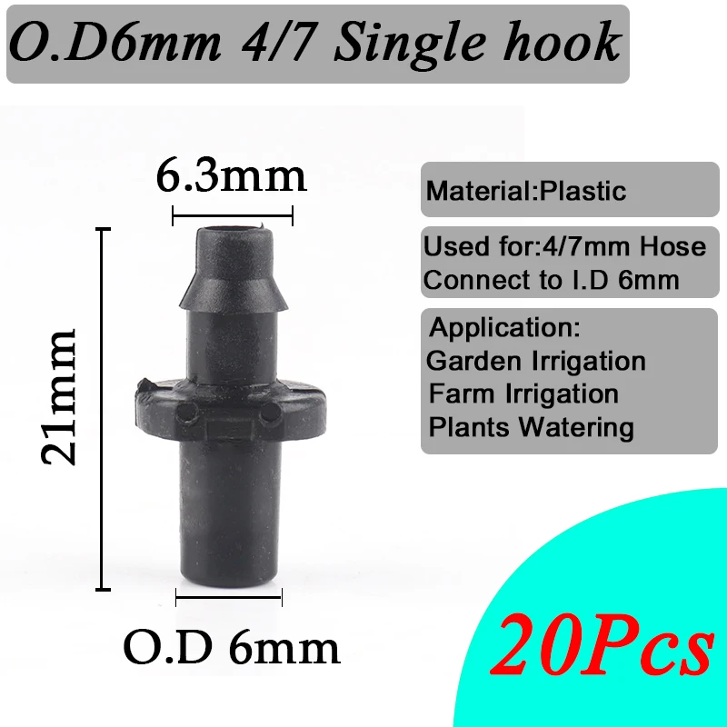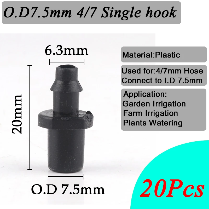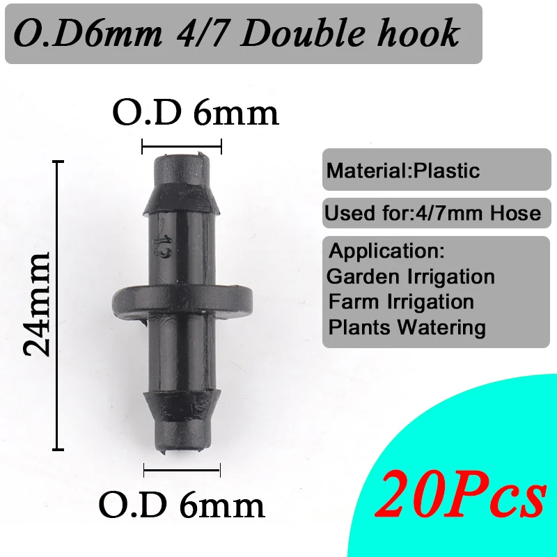20 шт оросительный капельный спринклер 1/4 "шланг Barb прямые разъемы 4/7 мм трубный фитинг для полива прямые аксессуары