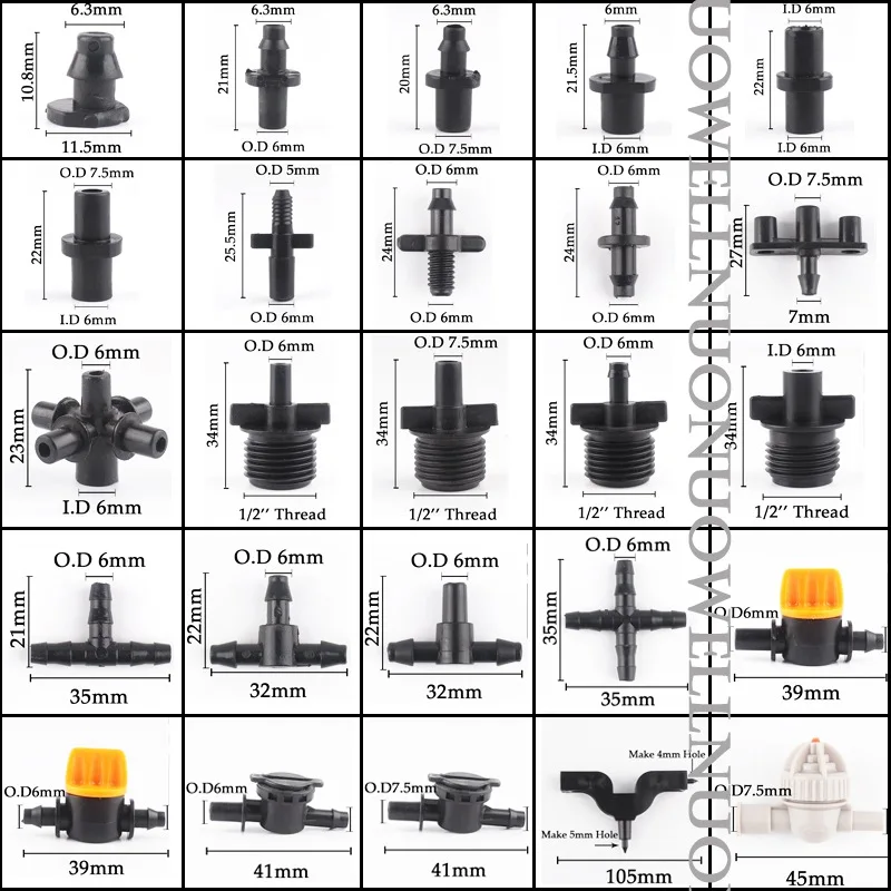 -Название: садовый водный соединитель -Материал: пластик -Цвет: черный -Размер: как вариант -Применение: ①Garden для полива и орошения ②Фрукты дерево и овощи орошение ③ Капельное орошение в питомнике ④Охлаждение животноводства и т. Д.