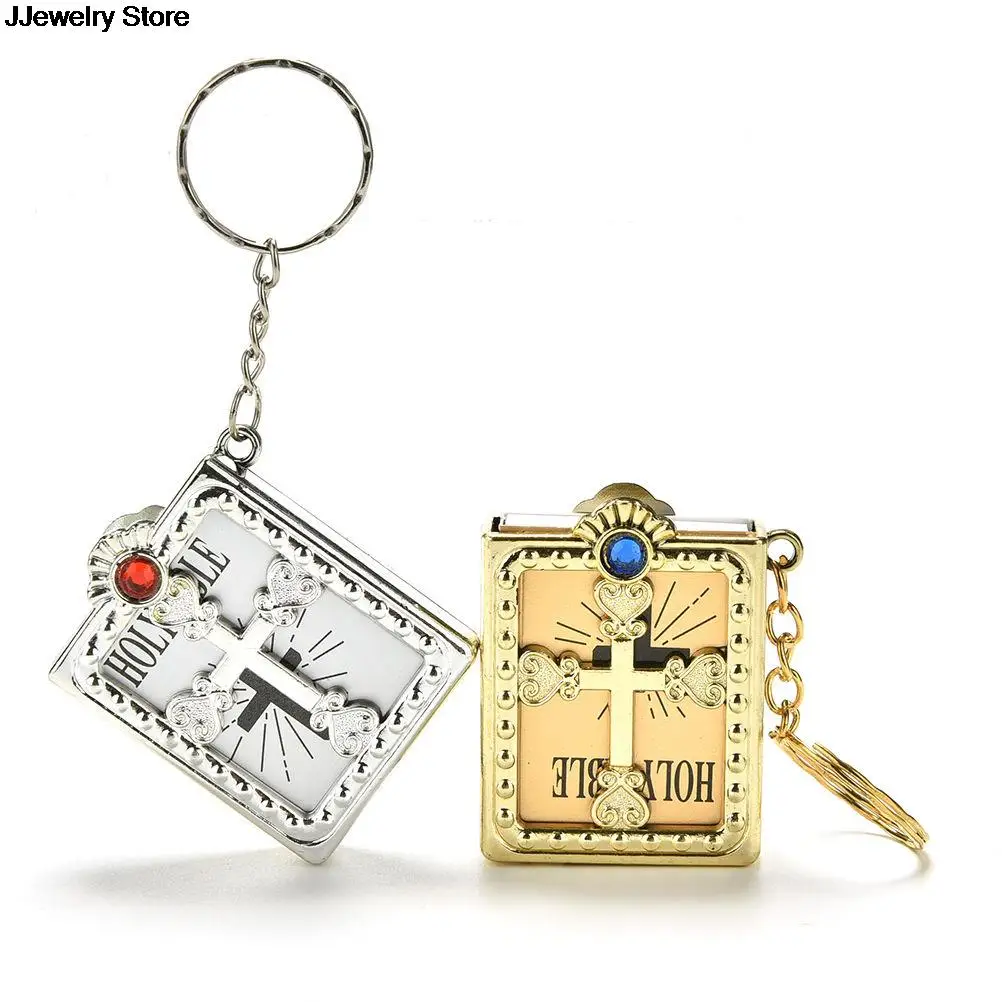 Красивое кольцо для ключей со священной библейской книгой. Отличный товар, который можно носить с собой для удачи и защиты или для того, чтобы помочь близким и друзьям. В мини-Библии: бытие, Исходы, Левит, первое письмо Павла к Тимоти, письмо Павла к Титу, письмо Иакова, второе письмо Джона и третье письмо Джона. Размеры (приблизительно): 4,6 см * 4,2 см * 1,6 см (1,8 "x 1,4" x 3/8 ") Цвет: серебристый, золотой Язык: английский