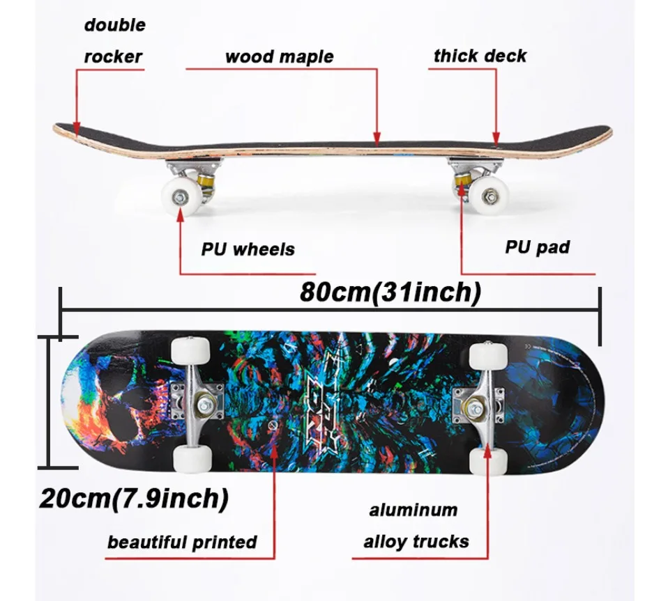 Материал: кленовое дерево, кронштейн из алюминиевого сплава, колеса из полиуретана