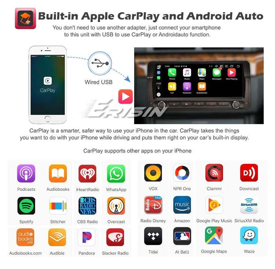 -Встроенный автоматический модуль Apple CarPlay и Android. Вам не нужно использовать другой адаптер, просто подключите