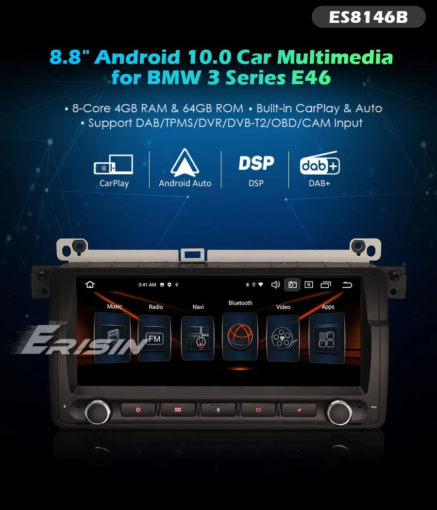 ES8146B 8,8 "Восьмиядерный Android 10,0 автомобильный мультимедиа CarPlay & Auto GPS TPMS/DVR/DTV/DAB-IN...