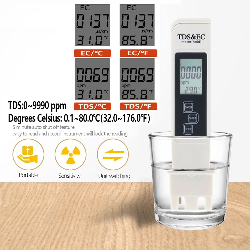 1. Профессиональный измеритель уровня воды комбинируется с измерителем TDS, измерителем TDS EC и датчиком температуры. В целях обеспечения точности и надежности выбрать DOY 3-в-1 TDS метр.