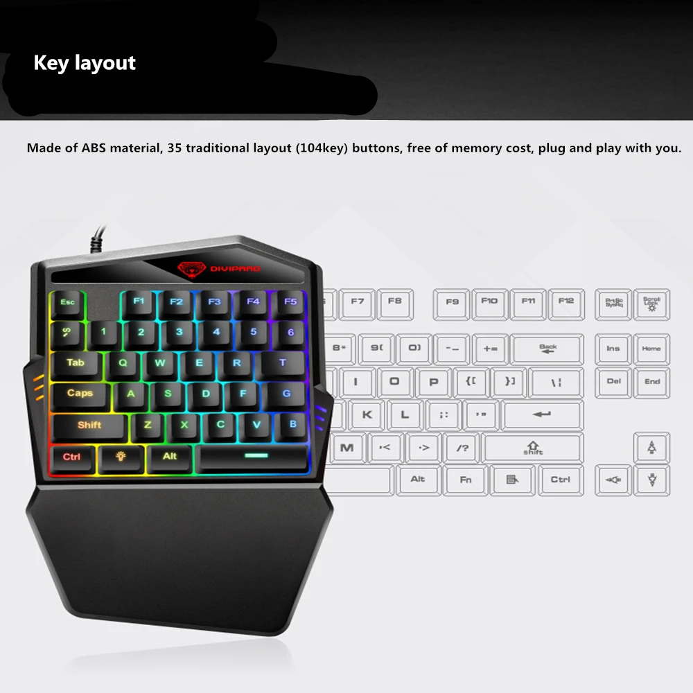 Специальный режим игры: Используйте игровую клавиатуру k5, ваш игровой опыт будет улучшен, эта клавиатура с одной рукой имеет только 35 основных игровых клавиш
