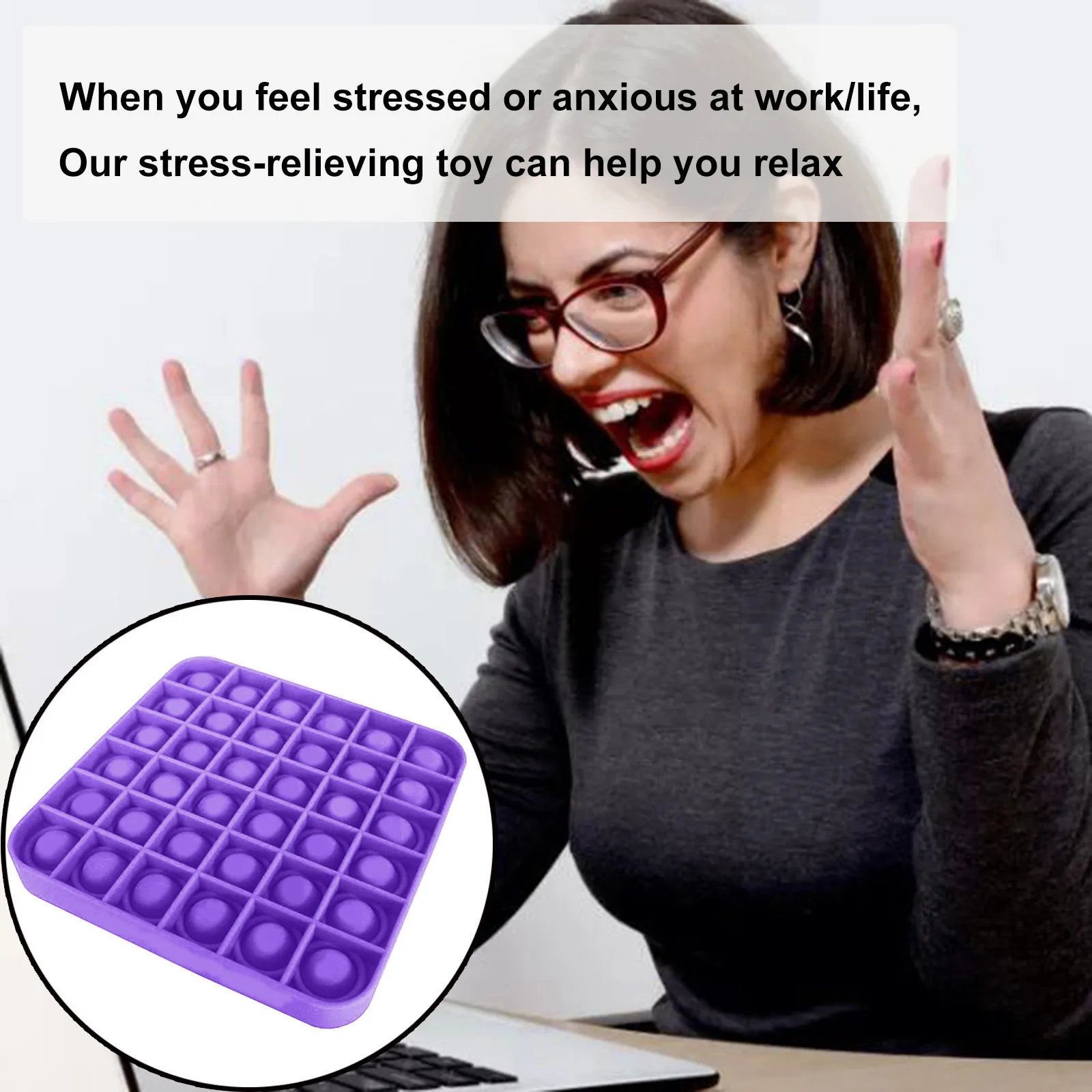 Усть нажмите на пузырьки мыши вниз, и они делают легкий звук; Затем переверните его и начните снова! Бесконечно многоразовые и моющиеся.
