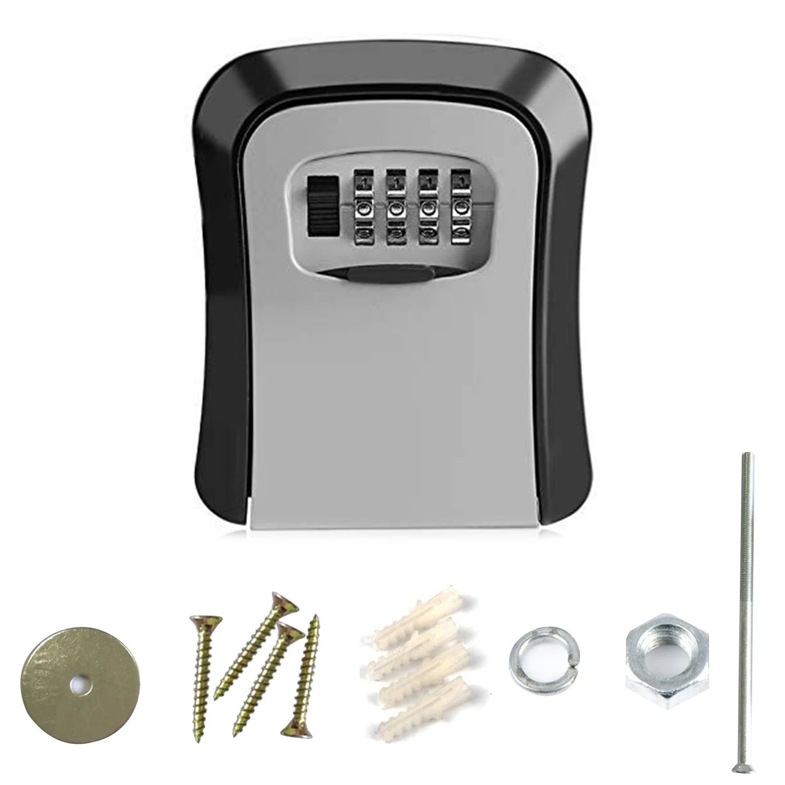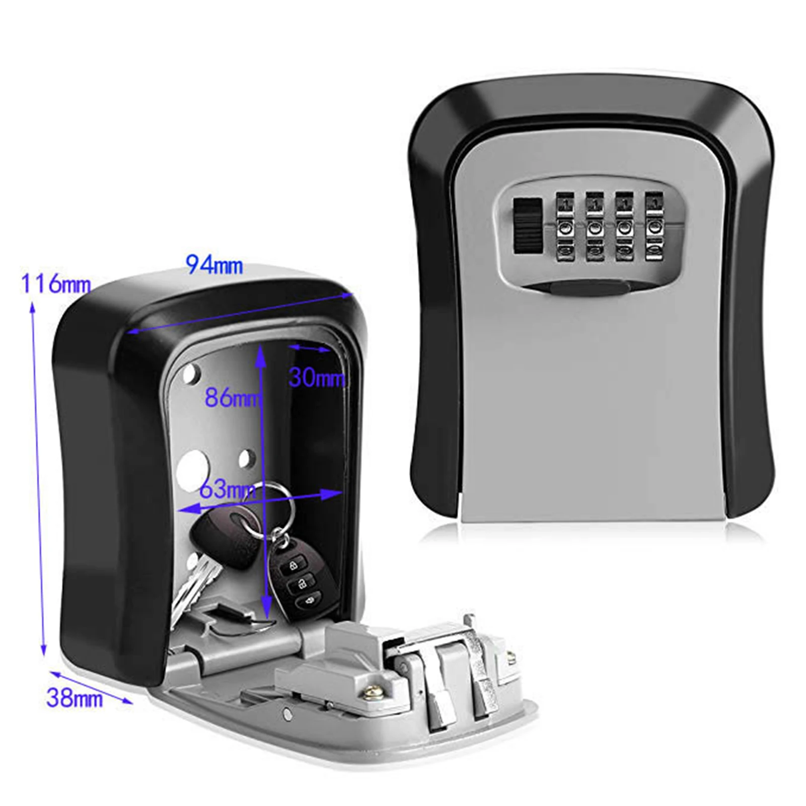 Клавиша блокировки коробка из Алюминий сплава, который имеет 4-разрядный Комбинации и водонепроницаемого материала, идеально подходит для установки на применение внутри помещений и на открытом воздухе. Супер безопасно для блокировки брелков и карт и так далее.