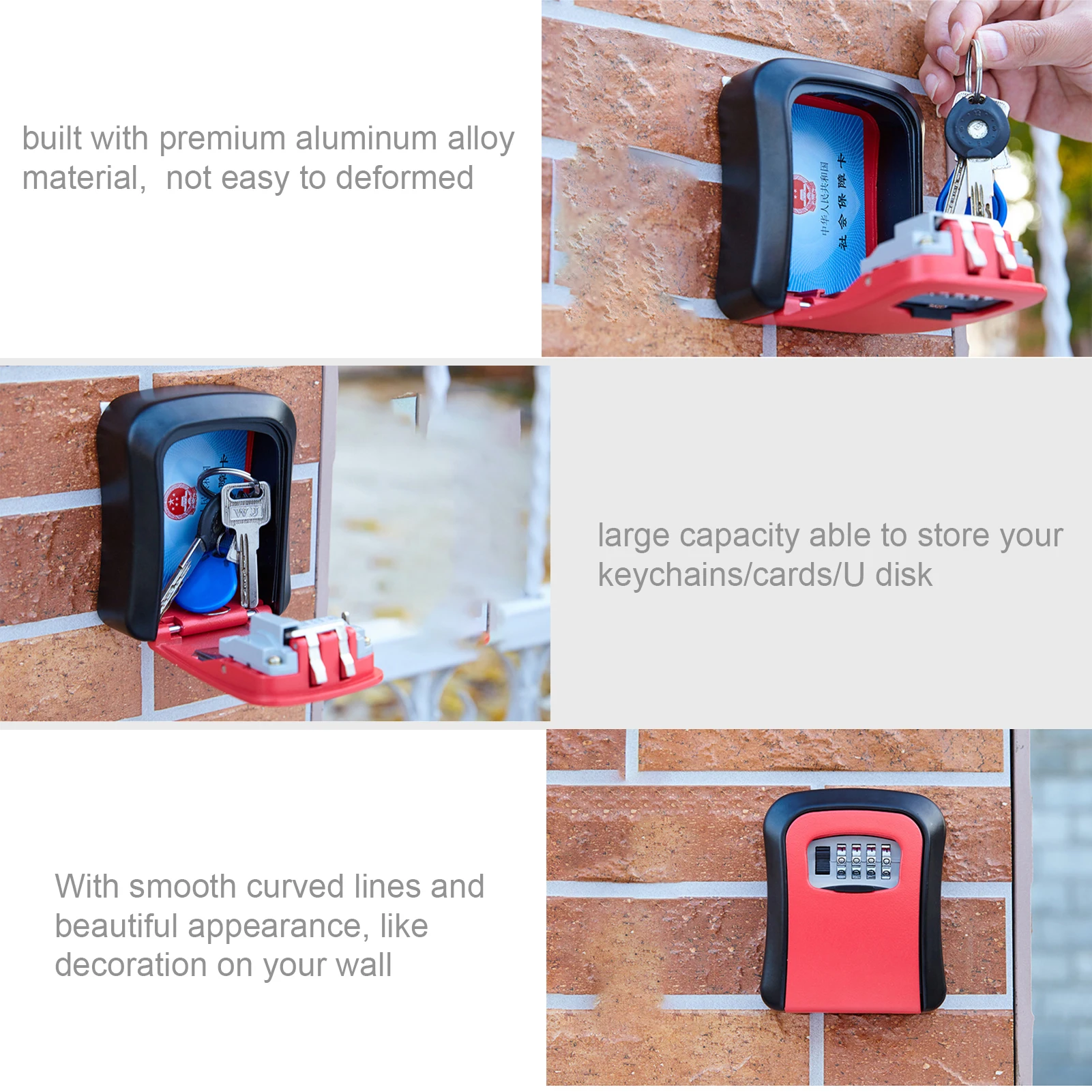 Большая емкость для хранения: ящик для хранения может блокировать несколько карт, брелки, большой палец USB и так далее. Не нужно беспокоиться о том, что вы не сможете открыть дверь, потому что вы забыли принести свои вещи или ключи.