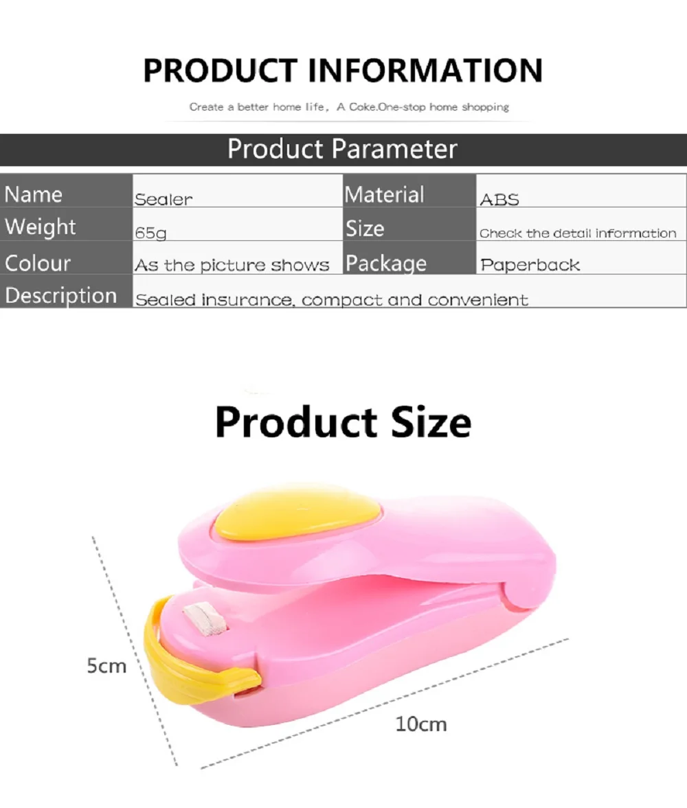 Тип: Пищевые Инструменты Модель пищевых продуктов: машина для запечатывания пищевых пакетов Цвет: желтый/белый/синий/фиолетовый/розовый Материал: АБС-пластик + стальная проволока Размер: 10 см * 5 см Питание: батарея AA (не входит в комплект) Вес: 65 г