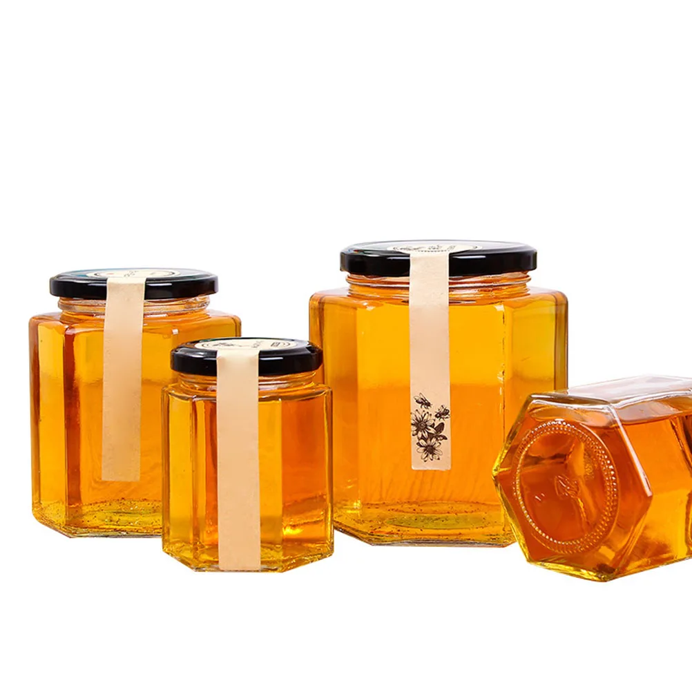 Это Шестигранная прозрачная бутылка для хранения медового стекла, прочная и безопасная для использования. С гладким спиральным Открывателем для бутылок и с помощью тонкого шлифования эффект уплотнения довольно хорош. Устойчивы к коррозии, сильная твердость, Пыленепроницаемость и водонепроницаемость, сохраняют безопасность и стерильность ваших внутренних вещей.