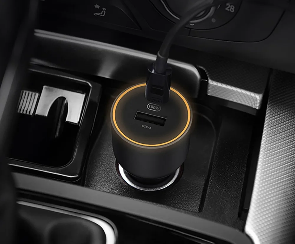 Автомобильное зарядное устройство Xiaomi с быстрой зарядкой (1A1C)Мобильные телефоны, фонари и мобильные источники питания полностью совместимыUSB-C 100 Вт макс Быстрая зарядка/USB-A, USB-C двойной выход/Цветной световой эффект