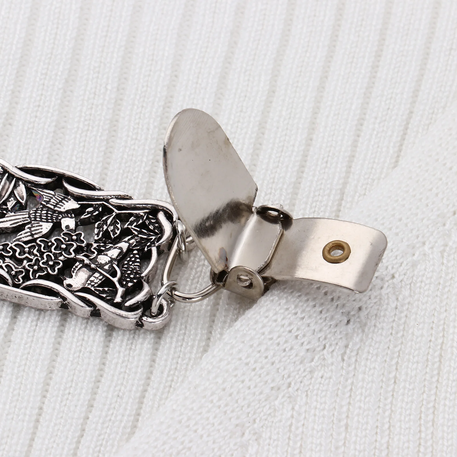 Закрепите зажимы для утки, вы можете аккуратно открыть зажимы и прикрепить к одежде, не беспокойтесь о разрыве одежды.