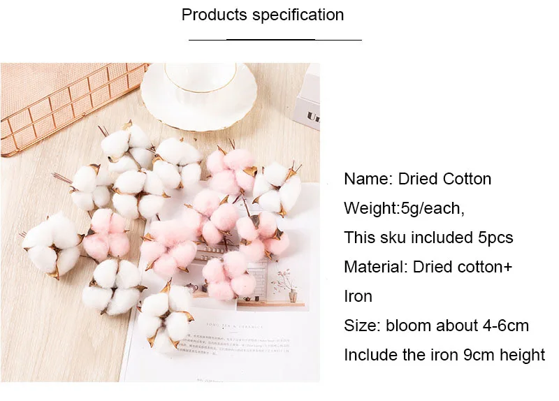 Описание:5 шт. искусственный сушеный хлопок natual DYI креативная гостиная офисный стол декоративный цветочный букет свадьба день рождения