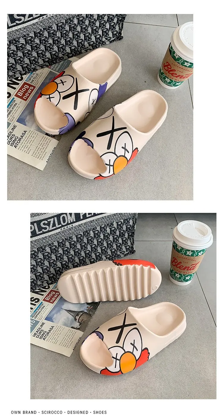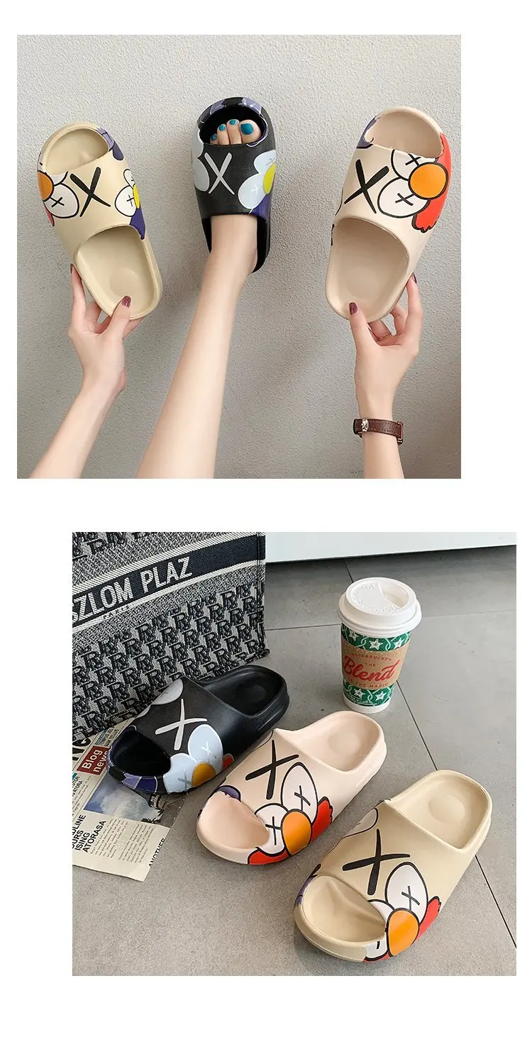 Вьетнамки с рисунком граффити; Женские домашние тапочки на платформе; Удобные нескользящие домашние шлепанцы; Женские шлепанцы на мягкой подошве