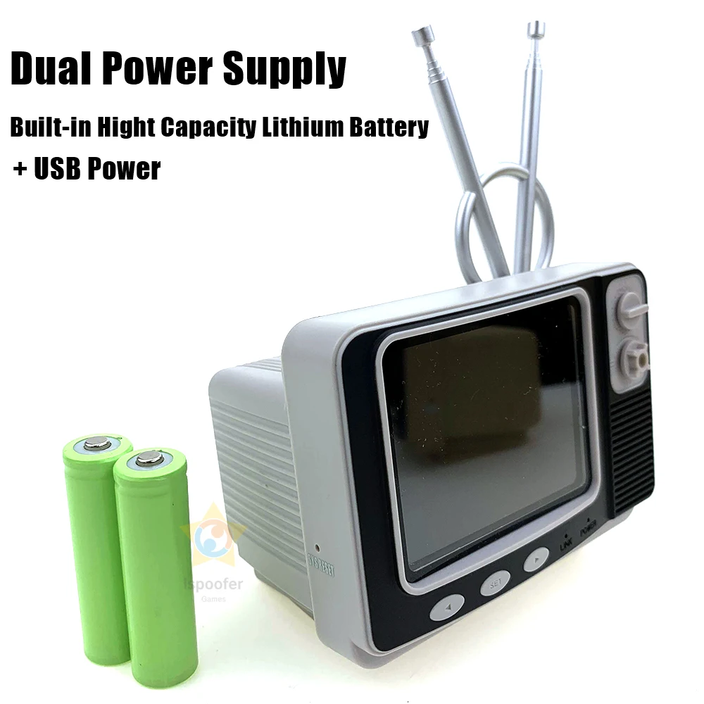 *Retro and stylish TV appearance, the most prominent decoration. Perfectly show your taste Full-featured front control, bringing a real retro experience, control volume, audio input. *High-definition display screen: 3.0-inch high-definition display screen, while ensuring the perfect size of the crafts, also considers the comfort of the game. Don't be too big or too small. Tailored for collectors, of course, as a game player can also find fun in it. *Support TV output: If you feel that the screen is not big enough, you can connect to the TV through the attached cable, and easily enjoy lively and interesting video games on the big screen. *2.4G BT wireless controller: with 2 wireless controllers, you can easily enjoy two-player games with your partner, and take you to relive your childhood easily. The handle is equipped with a lithium battery: each handle is equipped with a 500ma battery, which can be used for 6-12 months without shutting down when it is fully charged. *Time function: It has a time display function and time wake-up function, when it is in a sleep state, you only need to tap it lightly, it can be quickly awakened. And language selection, time setting, font color and exit setting can be adjusted under this function. *Two power supply modes for the host: 2 AA batteries or 2 14500 lithium batteries. The built-in lithium battery can be fully charged within 60 minutes and can support 5 hours of gaming, so you don’t need to worry about running out of battery power.