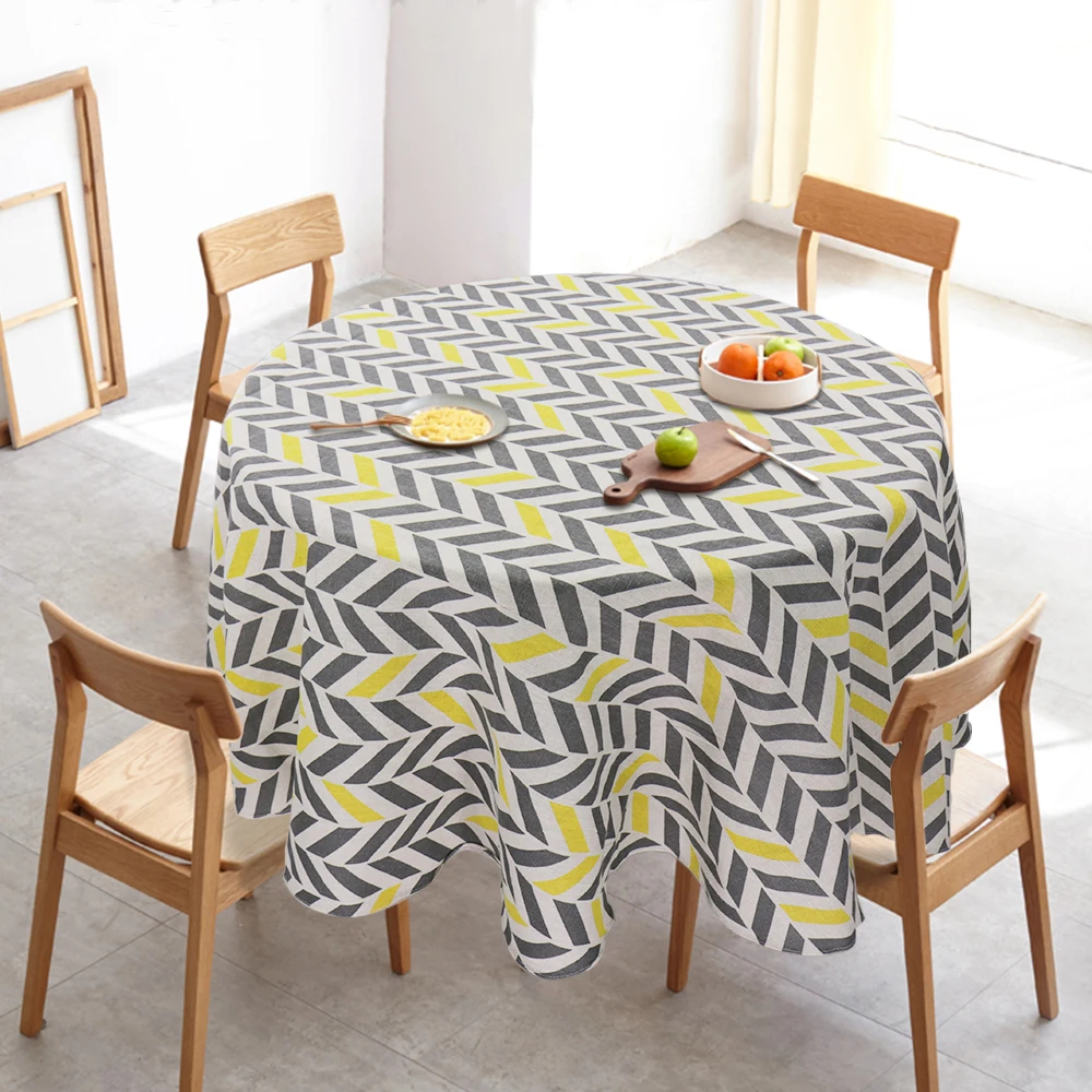 Скатерть в японском стиле из хлопка и льна, круглая скатерть, скандинавский стол, Обложка для дома, свадьбы, вечеринки, украшения, с принтом, белый, желтый