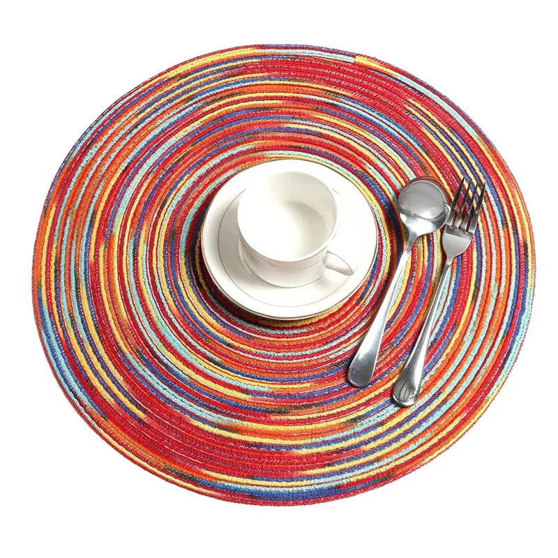 Материал: хлопок. 15 дюймов поперек, достаточно большой для любой тарелки или чаши.