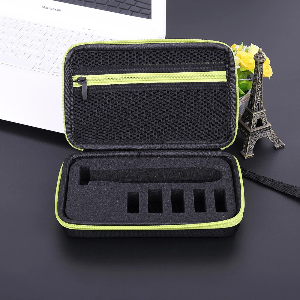 1.100% Новинка и высокое качество 2. Жесткий материал EVA Внешний и мягкий интерьер обеспечивают полную защиту от царапин, ударов, разливов и пыли 3. Дополнительный сетчатый карман предназначен для управления небольшими аксессуарами (сменные лезвия, шнуры питания и т. Д.) 4. Двойная молния дизайн, легкий доступ к вашему устройству и аксессуарам, также удобно для открытия и закрытия 5. Ремешок на руку позволяет легко носить с собой 6. Дорожный Чехол для Philips Norelco OneBlade Мужской гибридный Электрический триммер и бритва (QP2520/90 QP2520/70 QP2630/70 QP2530) Материал: ЭВА (этиленвинилацетат) Размер: 18,2*10,7*5,7 см/7.1x4 .. 2x2,2 '(прибл.) Цвет: черный + зеленый Количество: 1 шт.