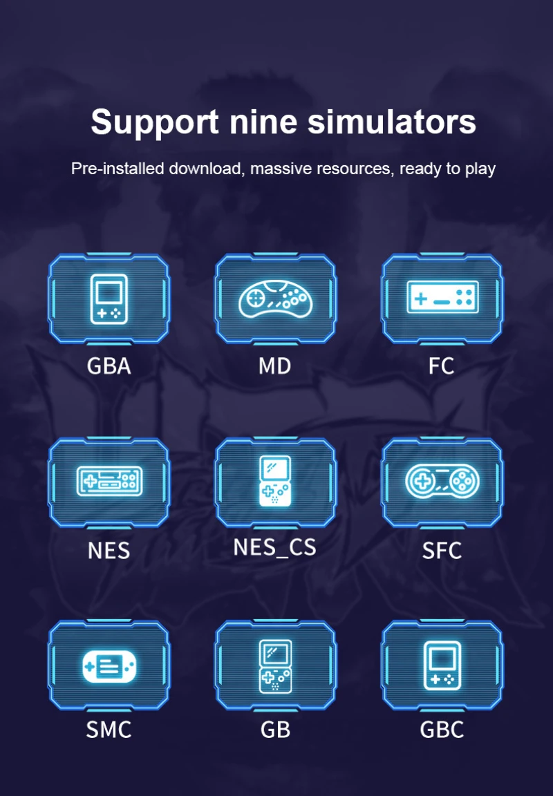 Поддержка GBA.SMD, NES, GB, GBC и других форматов игр, поддержка функции загрузки игр NES.
