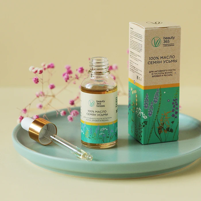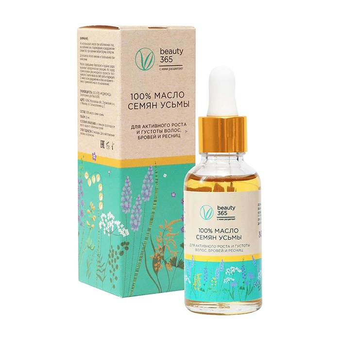 Beauty 365 Usma Oil — натуральное масло усьмы для стимуляции роста волос. Оно улучшает кровообращение и активизирует волосяные фолликулы, помогая отрастить красивые и густые ресницы, брови и локоны.
