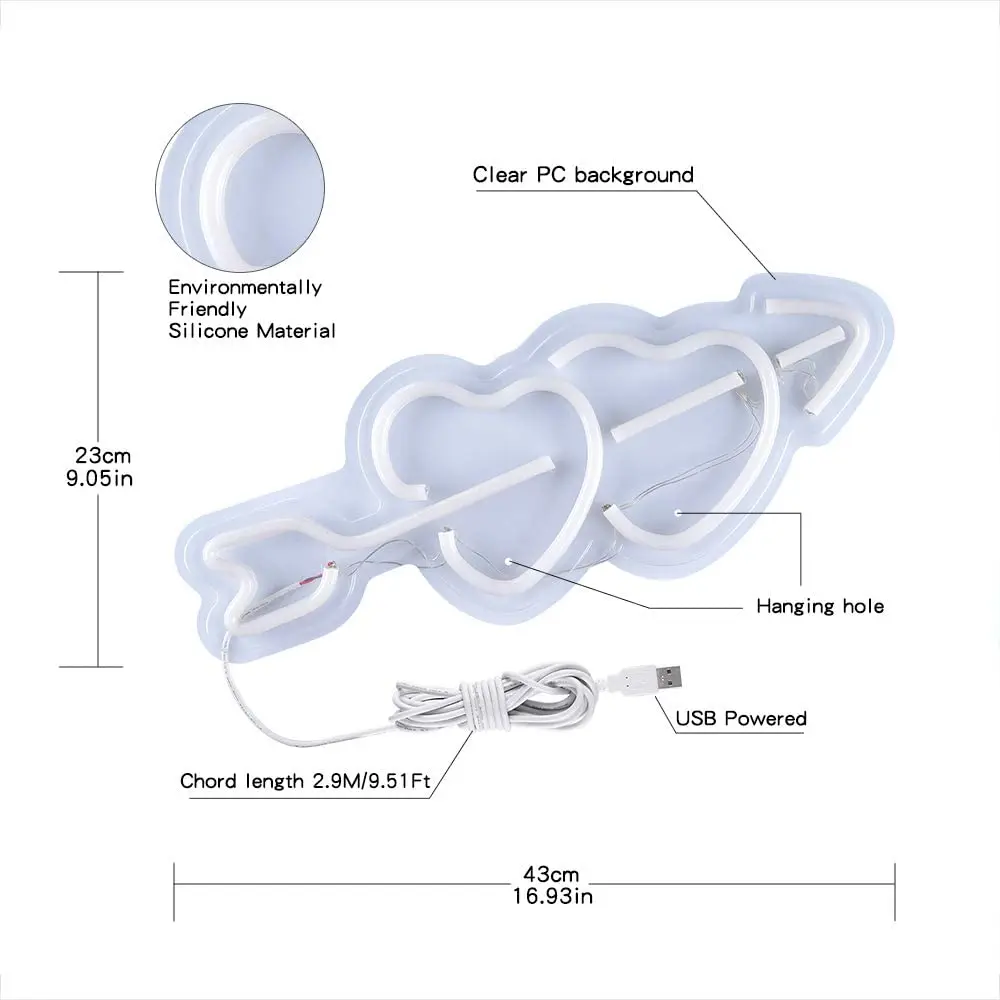 * Питание USB ed: неоновая вывеска питается от USB, зарядка от вилки, внешний аккумулятор, вы можете использовать любую вилку с usb-портом. (Примечание: адаптер питания не входит в комплект поставки). Длина шнура USB составляет 6,6 футов.