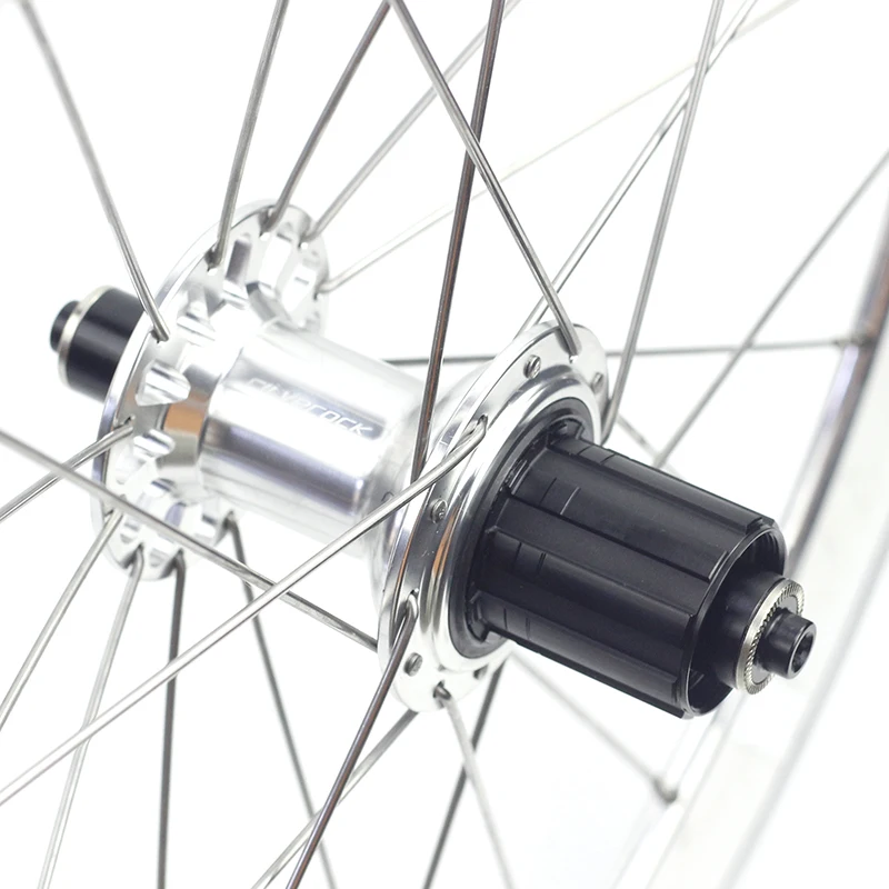Including: a pair wheels. Quick release. rim tape Material: Aluminum alloy Lightweight rim Hubs: SILVEROCK Hubs O.L.D: front 74mm, rear 130mm Rim frame height: 451/406: 40cm Size: 20 1 1/8 or 20" 1 3/8" tires Spokes: DT or Pilar Color: silver black Support :8-11 speed Brake: V brake Weight: front wheel 714g and rear wheel 955g Origin: Made in China, build by SILVEROCK Packed in SILVEROCK origianl box, size 46x20x40cm