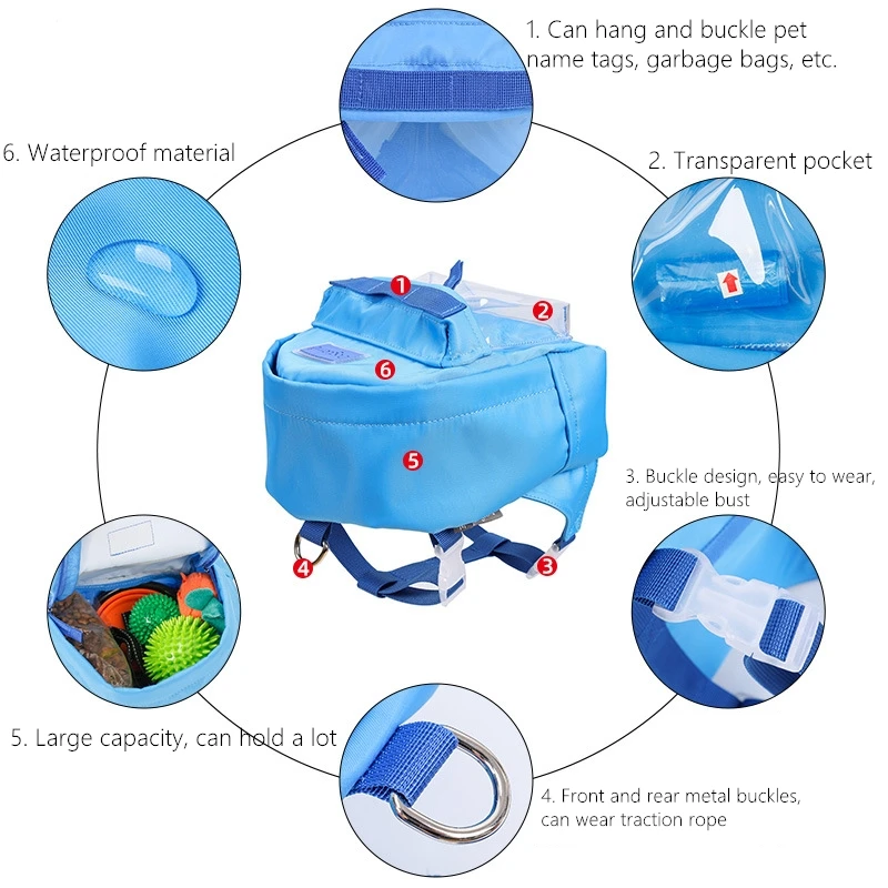 Особенности продукта/функции: 1. Отборная двухслойная Водонепроницаемая композитная ткань и прочная нейлоновая тесьма, не опасаясь погодных изменений; 2. Двухсторонняя молния, легко открывается и закрывается, тесьма на молнии тянет, Увеличивает трение и предотвращает скольжение рук; 3. Стиль Новый, цвет яркий, и прозрачный карман предназначен для облегчения поиска срочных предметов; 4. Дизайн с двойным карманом, маленький корпус, большая емкость, может держать больше предметов; 5. Маленькие предметы для домашних животных и владельцев могут быть размещены, это более удобно, чтобы выйти и ходить собака, и собственные вещи собаки можно носить самостоятельно; 6. Поставляется с передней и задней тяговыми пряжками, которая используется для временной тяги; 7. Дизайн с двойной пряжкой, легко носить; 8. Переместите пояс для груди и живота, чтобы зафиксировать рюкзак, чтобы предотвратить скольжение; 9. Спереди есть ремень с пряжкой, который может пристегивать мелкие предметы, такие как ярлыки с именами домашних животных и мешки для мусора; 10. Соответствующий вес поможет собакам потреблять лишнюю энергию и предотвратить снос.