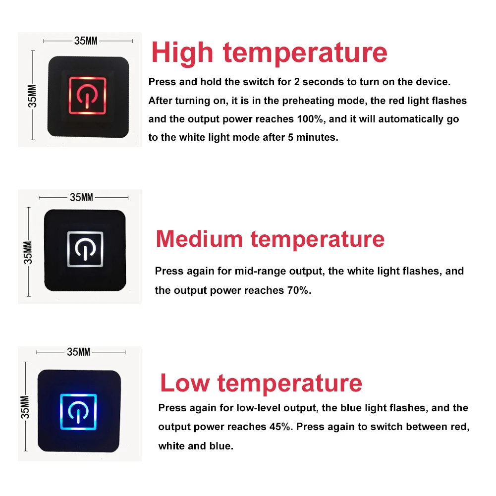 * 3.Высокая температура 45-50 градусов Цельсия, средняя температура 40-45 градусов Цельсия, низкая температура 35-40 градусов Цельсия.