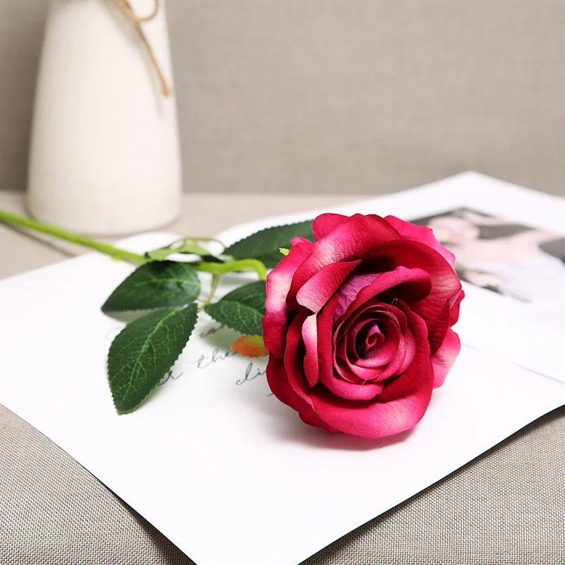 Высокое качество Флокированная Шелковая Роза искусственная букет цветов для подарка на День святого Валентина романтическое украшение для дома гостиной свадьбы