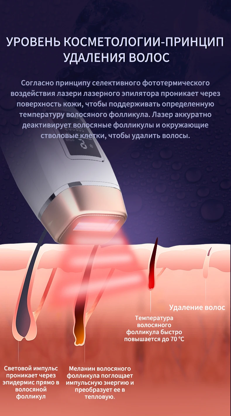 2. Перманентный: IPL работает внутри пор, уничтожает папиллу волос, тем самым достигает постоянного удаления волос