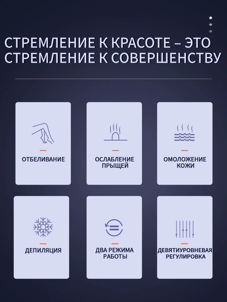 7. Девять регулируемых уровней энергии, более тонко разделенные на различные чувствительности кожи