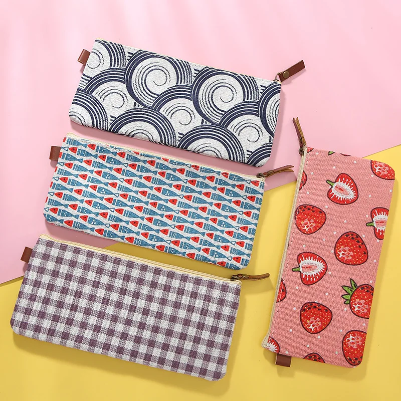 Стиль: плоский чехол-карандаш Материал: хлопок и лен Размер: 21*7 см Узор: клубника/маленькая рыба/решетка/круг Назначение: Чехол-карандаш/Офисная сумка для хранения