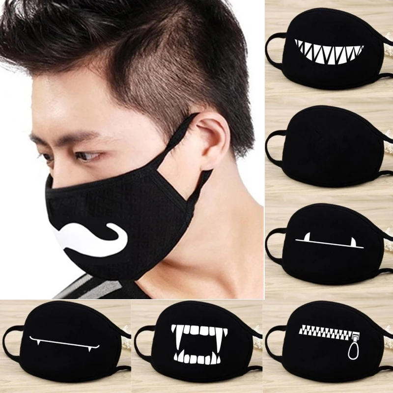 Описание1 шт., модная черная маска, хлопковая утолщенная, с принтом медвежонка, нос, зуб, модная, крутая, подвесная маска для лица, ветрозащитная