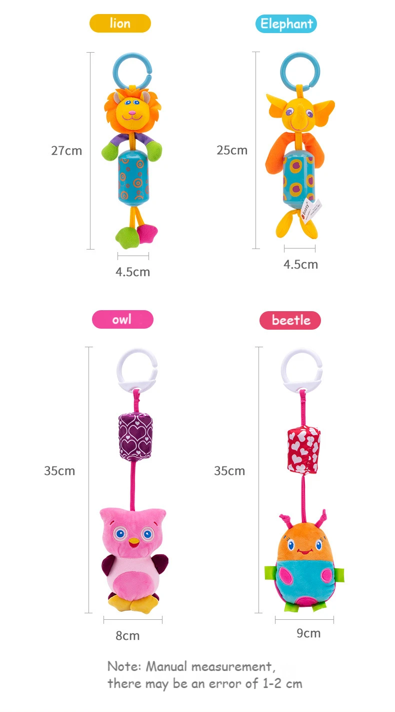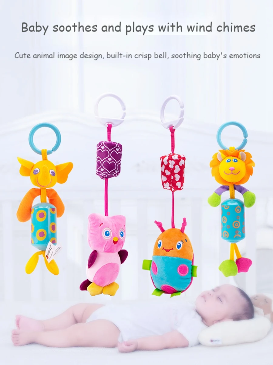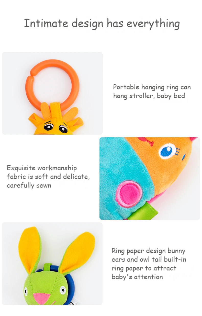 Веселые персонажи звонят с нежным встряхиванием, красочные и милые. Она может привлечь внимание малыша. Издает приятный звук при встряхивании, очень успокаивающий для малышей. Изготовлен из высококачественных тканей, приятен на ощупь и легко стирается. Легко крепится, либо вешается на детскую коляску, детское автокресло или кроватку.