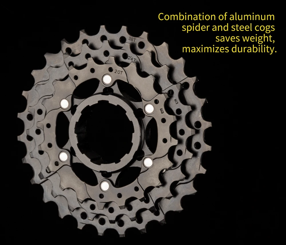 Новая кассета имеет небольшой вес, очень прочна и сделана в широком спектре вариантов зуба, чтобы соответствовать вашему стилю езды и местности, на которой вы едете.