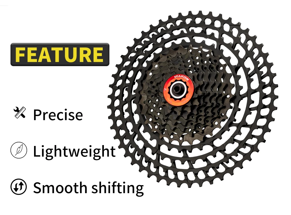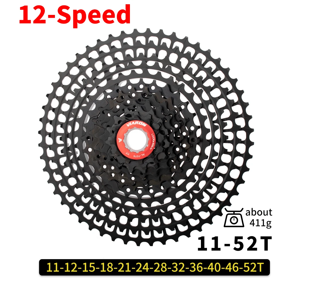 Название бренда: VIARON Скорость: 10/11/12-скорость Диапазон кассет: 11-46T/11-50T/11-52T Совместимость: для SHIMANO и SRAM (Примечание: должен быть обычным хабом) Цвет: черный/серебристый черный Вес: фактический вес кассеты зависит от количества зубов Рекомендуемое использование: Велоспорт, горный велосипед