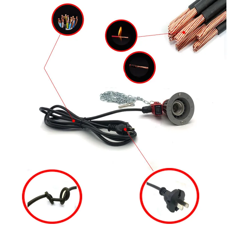 -Подходит для поросят, щенков, котят, цыплят, утят, кроликов и других животных, чтобы сохранить тепло и здоровье. Отличный выбор для ваших юных животных. -Прочный, длительный срок службы, тепло, высокая температура, модулятор светильник. -Висит над цыплятами/скотом на метровой цепочке, которая поставляется для эффективного выращивания цыплят.