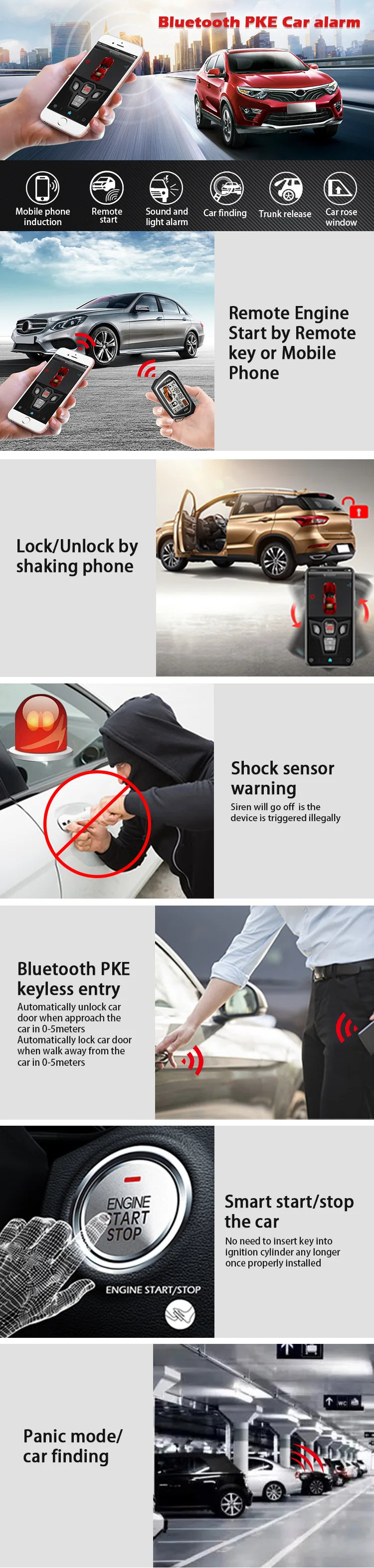 Умная Система запуска Bluetooth PKE Автомобильная сигнализация мобильный телефон с дистанционным управлением индукционный Запуск звука и светильник сигнализация для автомобиля поиск ствола отключение питания окно