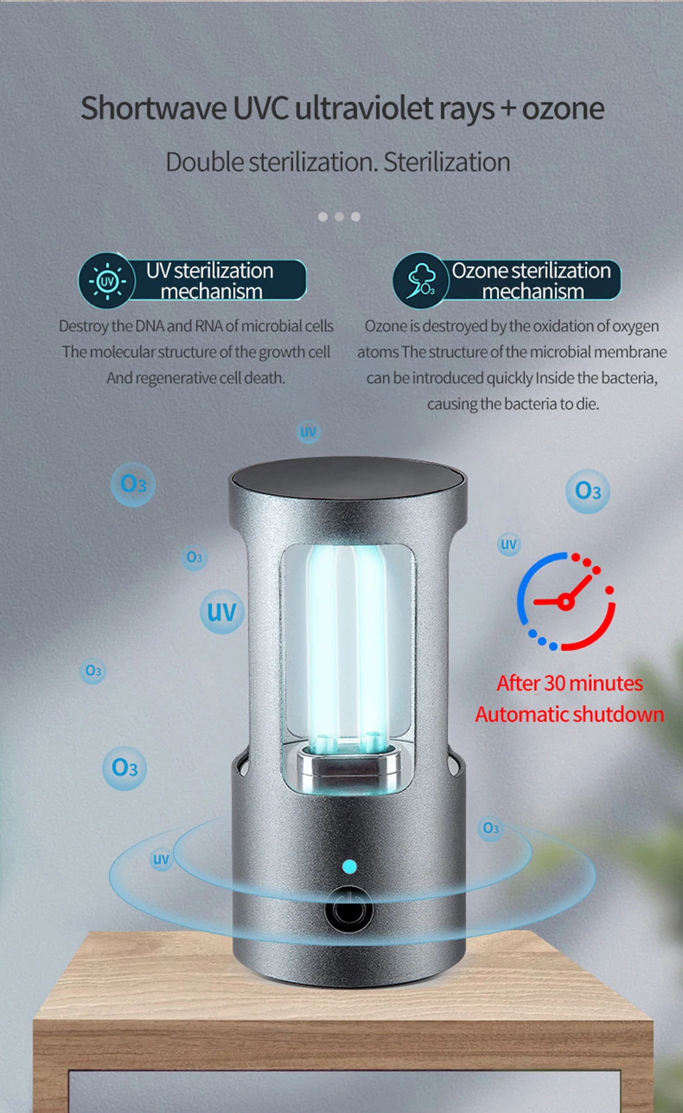 1. UVC луч и озон вредны для глаз и кожи человека. Пожалуйста, держитесь подальше от него, когда он работает.