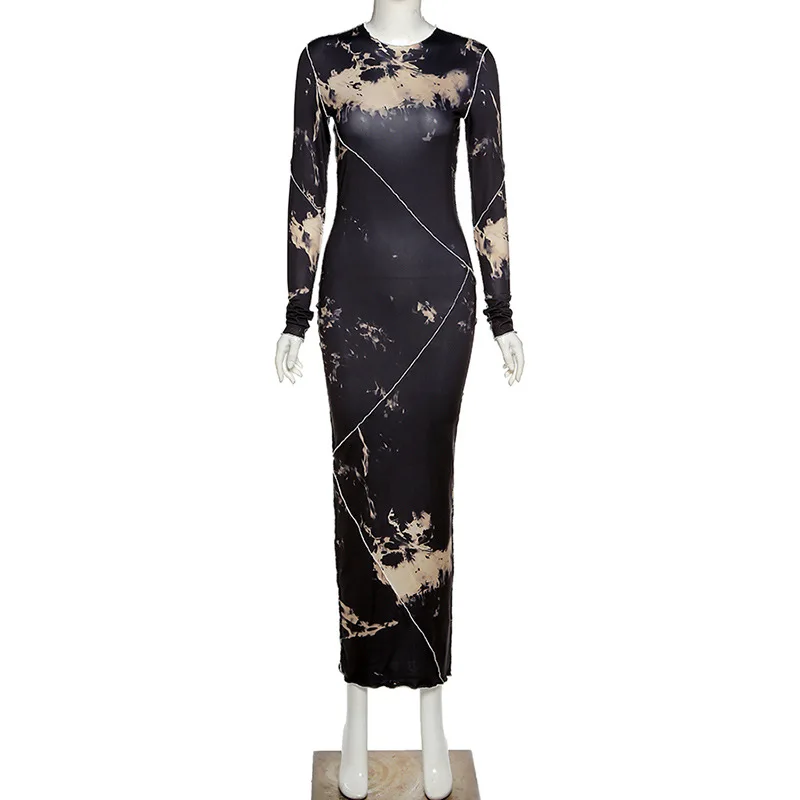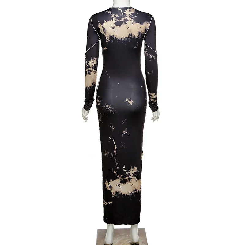 Женское облегающее платье-карандаш с длинным рукавом, эластичная уличная одежда в стиле пэчворк, базовая повседневная одежда для осени